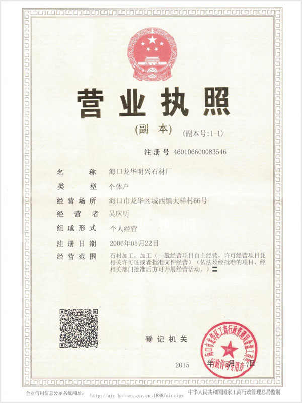 海南中岩石业有限公司营业执照
